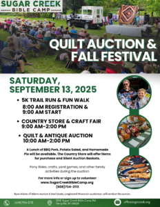 This TUESDAY, 9am-3pm: Volunteer Day! Join fellow supporters every Tuesday for new indoor & outdoor projects. Help take care of your Bible camp facilities. Enjoy fellowship and free Lunch! Call 608-734-3113 to RSVP and learn more.